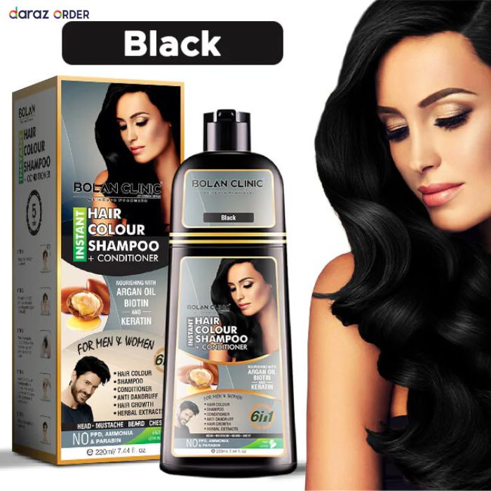 Instant Hair Color Shampoo is a two-in-one product that acts both as a shampoo and hair dye. With just one application and a short waiting time (usually 5 to 15 minutes), it transforms gray or faded hair into your desired shade. It is free from ammonia, enriched with herbal ingredients, and safe for both men and women. Darazcenter.pk