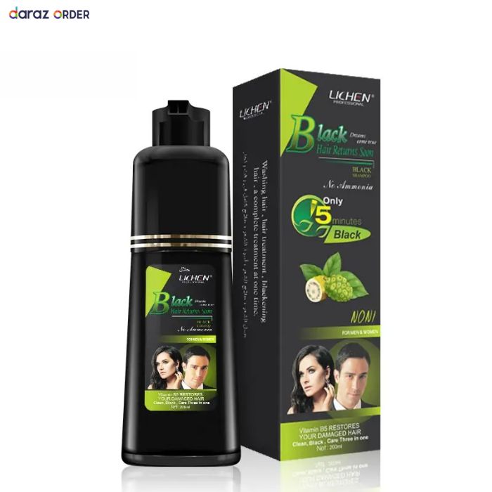 Lichen Hair Black Color Shampoo is a 2-in-1 herbal hair care solution. It functions as both a shampoo and hair color. Formulated with plant-based ingredients, this blackening shampoo colors hair within 5 to 15 minutes, leaving it smooth, shiny, and naturally black. Darazcenter.pk